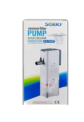 Sobo filter pump sponge absorbs dirt and clean the water suitable for both fresh and sea. ideal for any aquarium filtration . Model AQ-1000F Voltage AC 220-240V 50/60Hz Power 15W F max 1000L/H